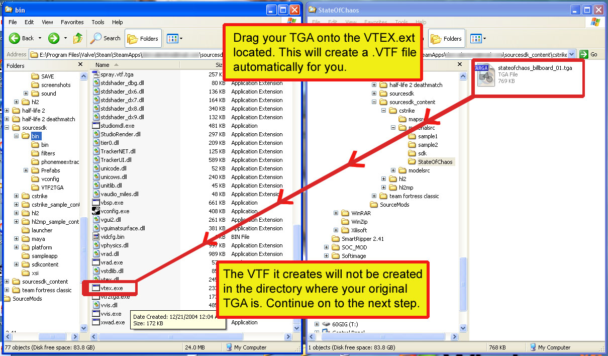 Open two Windows Explorer windows so you can just drag your TGA onto the Vtex tool. In the image below, you'll see how.