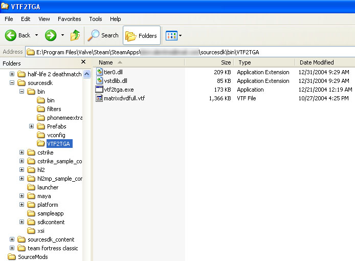Go back to the VTF2TGA directory you created in the bin directory and paste the three files. Your directory should now look like the image below: